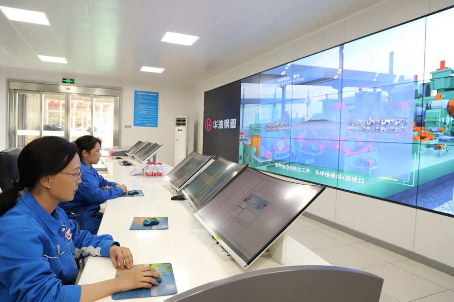 位于河北沧州的华油钢管有限公司是我国油气输送钢管的制造的“老字号”。近年来,企业加快科技创新,被认定为国家级专精特新“小巨人”企业。研发生产的“华字”牌X80钢级Φ1422mm螺旋缝埋弧焊管突破了超大壁厚X80螺旋埋弧焊管制造技术瓶颈,通过中国石油集团、中国钢铁工业协会新产品鉴定,被中国石油集团认定为自主创新重要产品。企业全部22道工序中的19道工序实现了数字化、信息化、智能化,生产的各类钢管产品广泛应用于国家油气重点工程。新华网发(郑强 摄)