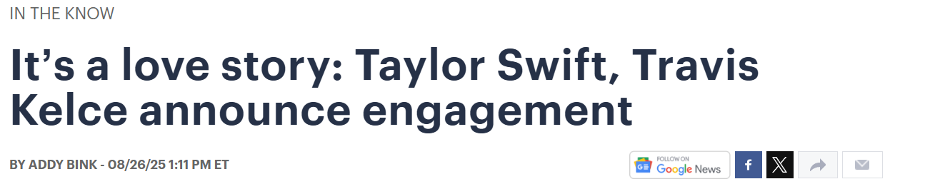 流行天后泰勒·斯威夫特(Taylor Swift)与NFL球星特拉维斯·凯尔斯(Travis Kelce)于8月26日周二正式宣布订婚。