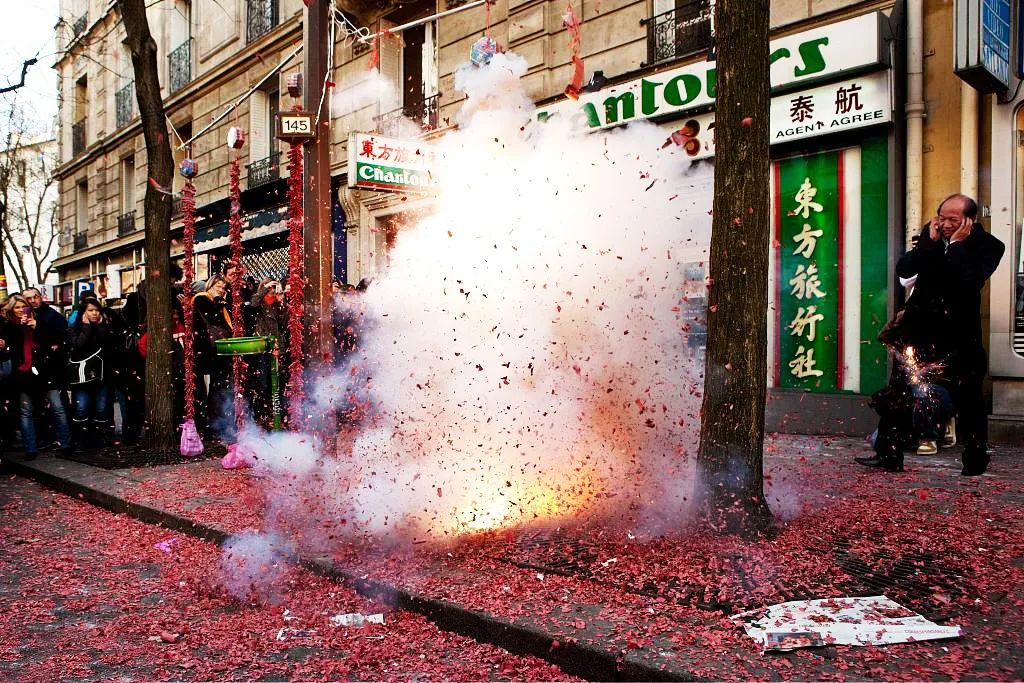 巴黎唐人街 春节放鞭炮丨@视觉中国