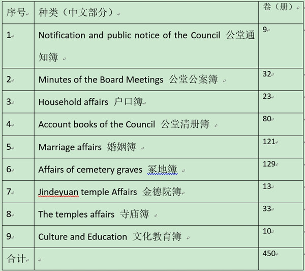 现收藏于荷兰莱顿大学汉学院图书馆的公馆档案文献,有646卷(册)本,涵盖的时间从1772年至1950 年。这些档案基本上为中文文献,少量卷本为荷兰文和马来文,而马来文的文献多为 1920 年以后的记录。经过整理和分类的公馆档案(中文)文献主要有以下九大类构成,共450册。