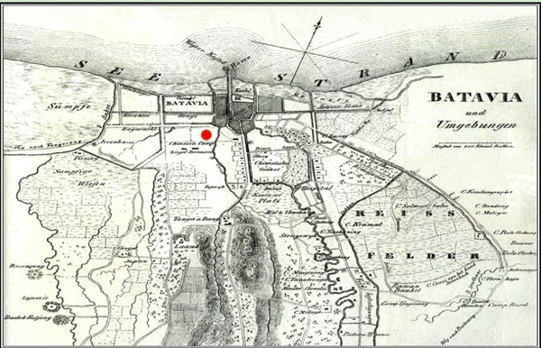 图中红点标识即为吧城华人居住区(Chinese Campong)
