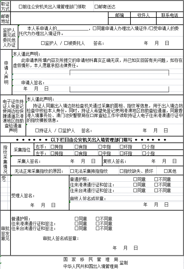 (一)申请人向公安部委托的县级以上公安机关出入境管理机构提交申请材料并按规定采集指纹信息;
