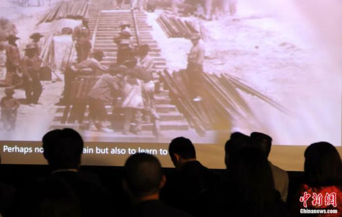 中新社记者:1869年5月10日,首条横贯美国东西部的太平洋铁路竣工,这条铁路的建成凝结了无数铁路华工的血汗。在缺乏现代机械的年代,华工如何完成这项伟大的工程?