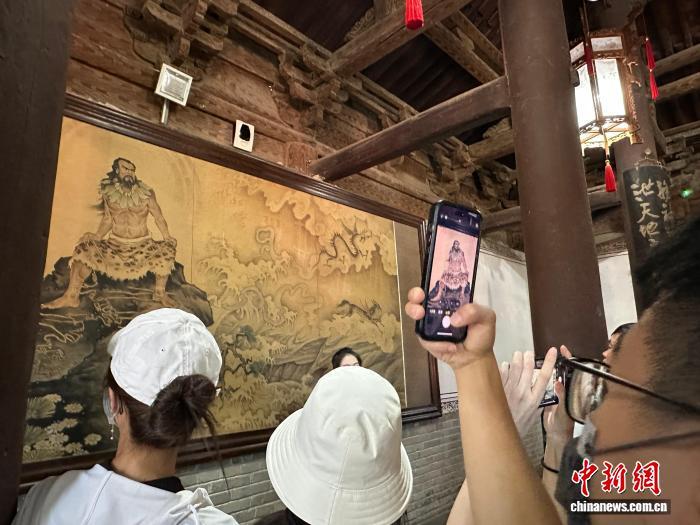 图为台青在伏羲庙先天殿中参观伏羲创卦图。王牧雨 摄