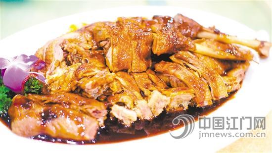 台山五味鹅:表皮金黄锃亮,十分诱人。一口咬下去,鹅味浓郁,略带脂肪的部位最为美味,肥而不腻。由于充分吸收了酱汁的精华,骨头也非常美味多汁。