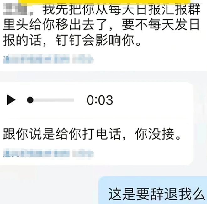 然而,发现自己百般威逼利诱,下属还不服从自己时,杨先生恼羞成怒地将王女士踢出了工作群聊。