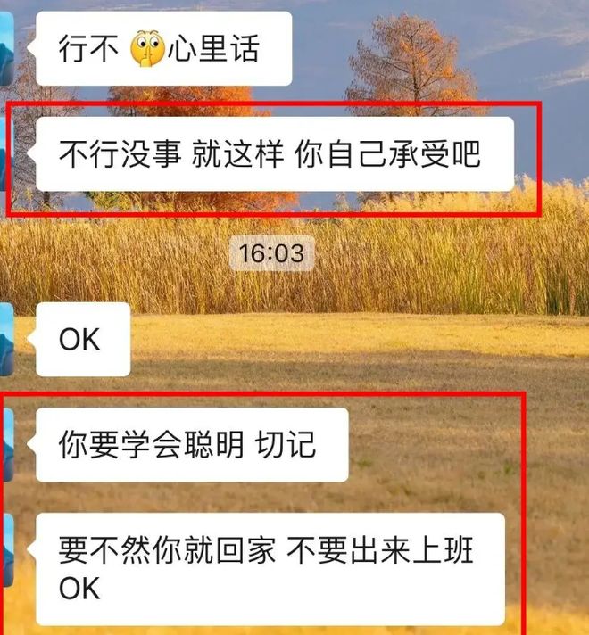 然而领导也非常大方地来了一句“不行没事”,却又开始威胁王女士:你自己承受吧。
