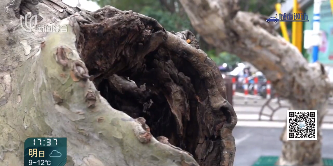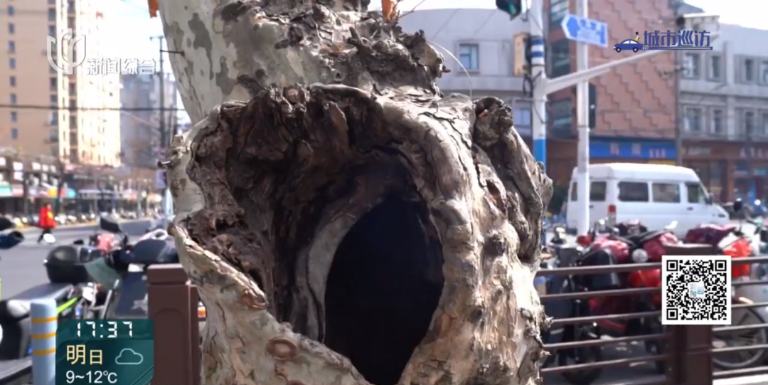 上海一地铁口引围观,这棵梧桐树怎么了?还暗藏"神秘洞口"…