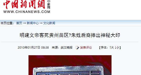 明朝建文帝在贵州苗族地区去世?朱姓后代带出神秘印章——中新网
