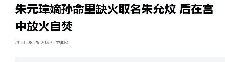 朱元璋的嫡长孙命里缺乏火元素,因而取名为朱允炆。后来他在宫中纵火自焚——2014-08-29 20:39·中国网