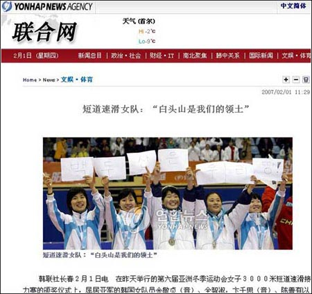 在这种情况下,有事大主义,也就有反事大主义。韩国历史上的反事大主义者就是大韩民族最初的民族主义者,那么你要反事大,就得先证明韩国以前也强大过!中国也并非是不可战胜的!但是真实历史并不是如此,而要设定这个史观,就会篡改历史。因此韩国民族主义的另一个影响就是各种奇葩的史观。韩国人很喜欢抢他国的文化和领土,比如在2007年初,中国长春举办的亚冬会,当时韩国选手登上领奖台后就举起纸牌“白头山(长白山)是我们的。”