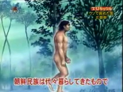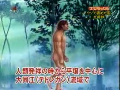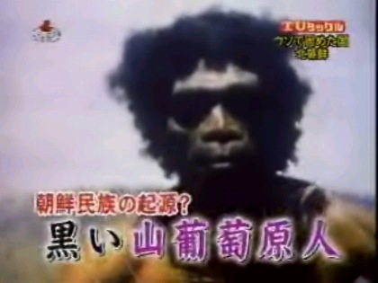 有些朋友可能愤怒了,那是不是全世界都起源于韩国?其实这句话还真没错,韩国人还真是这样认为,北韩在本国的科学教育节目就公然宣称人类乃起源于北韩的黑山葡萄原人。下图是北韩电视台的节目,由日本人翻译的。