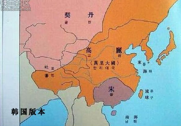 这一时期的著名伪历史书《桓檀古记》还有另一个说法,就是韩国三国时期高句丽和百济多次占领中国今天的山东、江苏、浙江、山西、河北一代。而中国唐朝时期,国土面积不及三国任意一国。南宋时期更是被高丽压在国土南方一角。同时早在上古尧舜禹时期,大韩民族始祖檀君曾派遣舜取代尧、派太子扶娄教大禹治水。所以综上所述,中国自古以来就是韩国的固有领土。