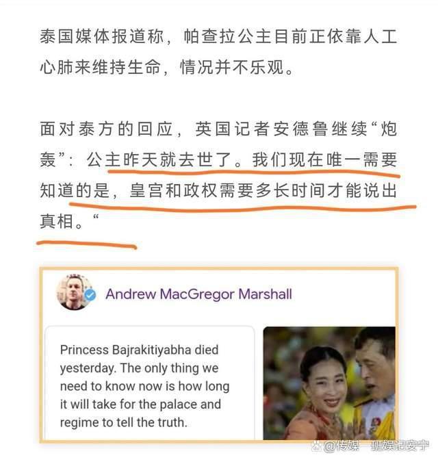 泰国王室的长公主“帕公主”已经抢救回来了,这不是我说的,是“澎湃新闻”报道的。