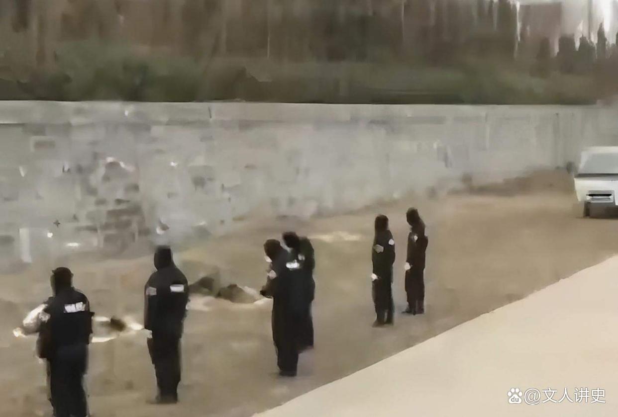 注意看,这是2005年我国处决死刑犯时的真实影像,警卫员们将几名死刑犯押成一排,来到了郊外空旷的刑场。