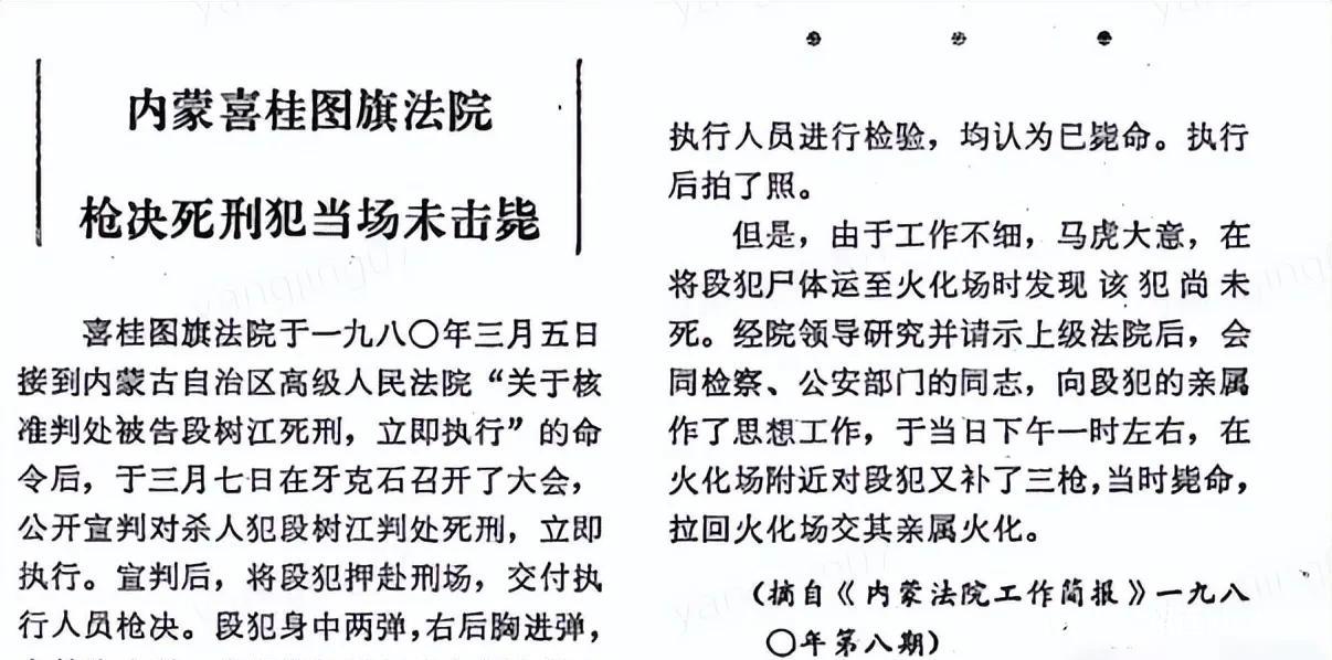 很多人觉得这事很稀奇,其实大千世界无奇不有,死刑犯被枪毙后没死的事情在八十年代的内蒙古也出现过,最后这个犯人也是在殡仪馆被补枪的……