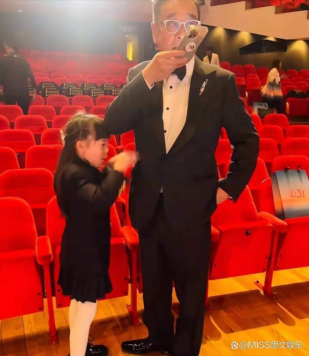 尔冬升抱着女儿Teresa,脸上看不到导演的严肃,只有一种很普通的笑。