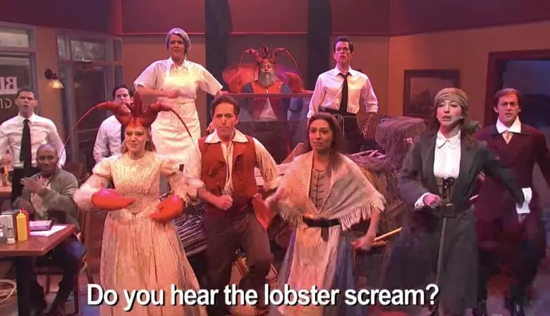 照搬原版43季第18集的构思,用音乐剧《歌剧魅影》和《悲惨世界》的唱段歌颂小龙虾,多少还是有点尬。