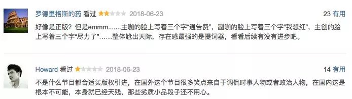 联合出品方还有推出了《吐槽大会》、《冒犯家族》的笑果文化,和制作了《笑傲江湖》、《欢乐喜剧人》的欢乐传媒,这两家算得上是行业内颇有成就的先锋。