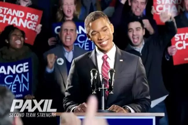 有一则抗抑郁药广告的主角设定成了奥巴马,那时他还在任。