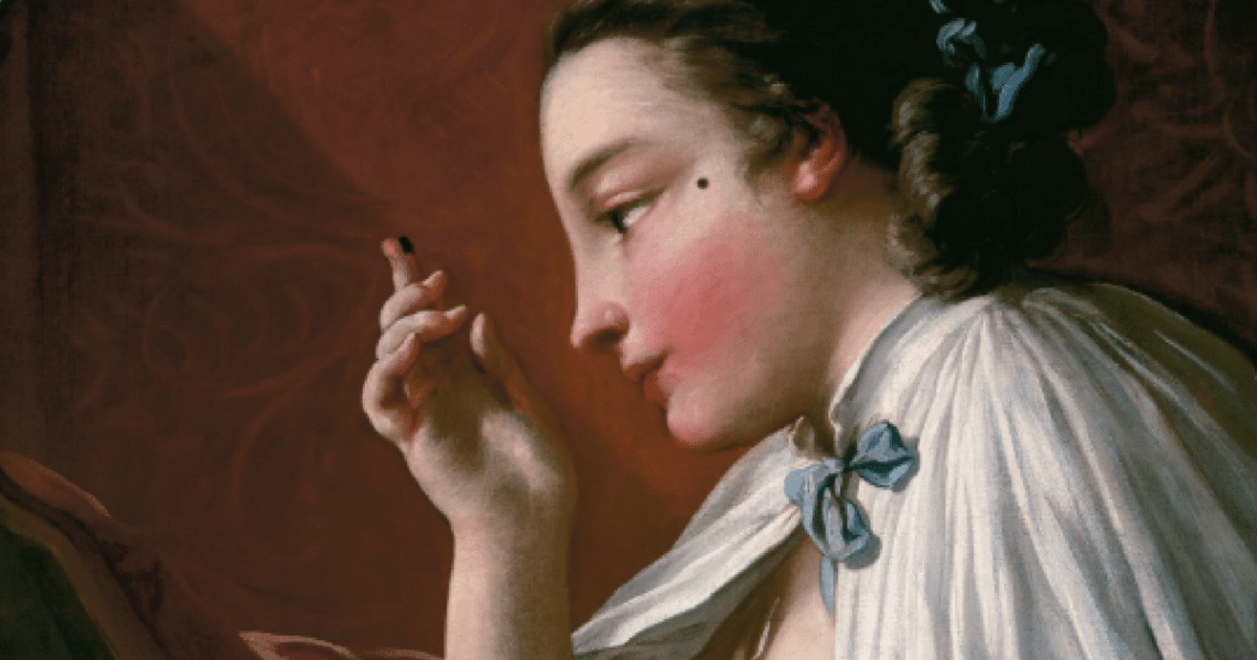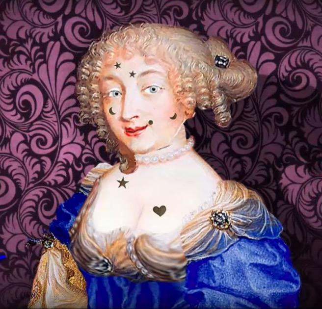 中世纪开始,「黑痣」慢慢进入人们视线,人们对它的评价通常是比较积极的,特别是自17世纪开始,欧洲宫廷里的“假美人痣”( mouche) 潮流盛行。人们会使用黑色的塔夫绸或丝绸剪裁出各种形状,以圆形为主,再使用胶质材料将其黏到脸上,来冒充「黑痣」。这些“假痣”一方面可以反衬皮肤的白皙,遮盖脸部瑕疵;另一方面根据位置的不同,还可以向异性传达不同的含义哦,比如嘴角右上方代表活泼的个性,而嘴角右下侧却是卖弄风情的意思!
