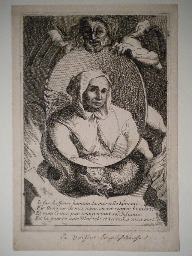 凯瑟琳 蒙瓦然,简称拉瓦然 (Catherien Monvoisin dit la Voisin 1640-1680),是生活在巴黎玛黑区一带的职业巫婆,她有个秘密组织,由一些炼金师,无照医师等,他们长期秘密研究各种黑魔法,以解决社会各类疑难杂症,比如张三希望出轨的老公回心转意,李四则想为自己的小三堕胎等等。还别说,拉瓦然的地下生意做的相当红火,一剂药就可以干掉让你不爽的人,这样的效率吸引了大批大批的顾客,这之中有绝大一部分来自贵族阶层。