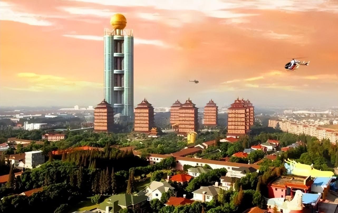 村里还有一座超五星级标准建造的,集休闲、娱乐、购物、餐饮为一体的328米高的大楼。