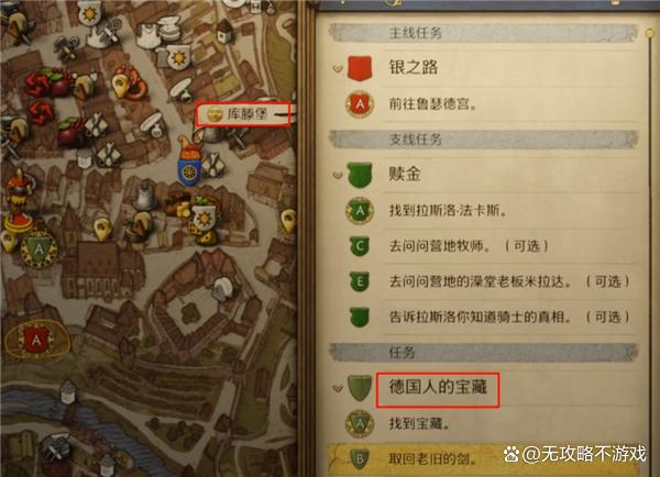 在天国拯救2中,玩家首先需要接受寻找德国人宝藏的任务。前往库滕堡东南角的墙洞,找到“老鼠”并与她对话,接受这一重要任务。任务接受后,你将开始一段冒险之旅,寻找隐藏在不同地方的宝藏。