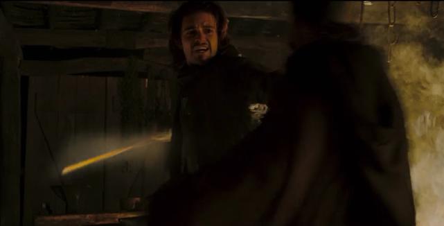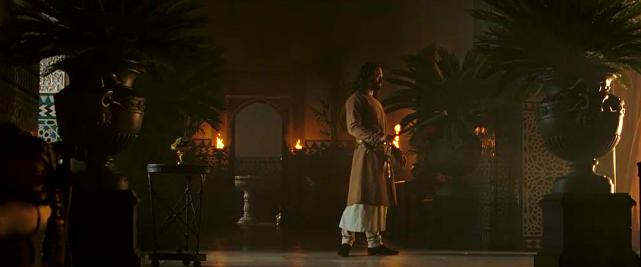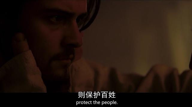 影片中耶路撒冷王的扮演者时爱德华.诺顿,因为要佩戴面具,所以演员只能用眼神和肢体语言来演绎传奇耶路撒冷王,这个面具设计也很好,很宽的脸庞,深陷的眼窝,让人看上去很慈爱和悲情;再加上演员的肢体语言,把王的高贵冷峻与病痛的折磨演绎的淋漓尽致;在这次会面,王上给年轻的伊贝林男爵交代了如何成为领主,其中有一个细节他们交流了城墙的防御工事建造,日后耶路撒冷王也按照伊贝林男爵建议改造了耶路撒冷的城墙防御,为后来萨拉丁久攻不下埋下了伏笔;之后王上要伊贝林男爵返回封地,保护耶路撒冷朝圣之路;
