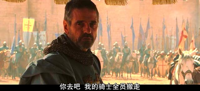 尹贝林男爵回到耶路撒冷动员城内百姓守城,求得一线生机;他战前赐予所有可以战斗的人为骑士,也包括在影片最开头在十字路口埋葬他妻子的格拉弗蒂格,这里的呼应,其实是一种赎罪式的解脱,当人们走出宗教的枷锁,人人都将成为英雄;