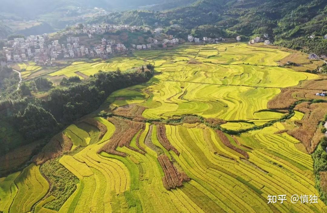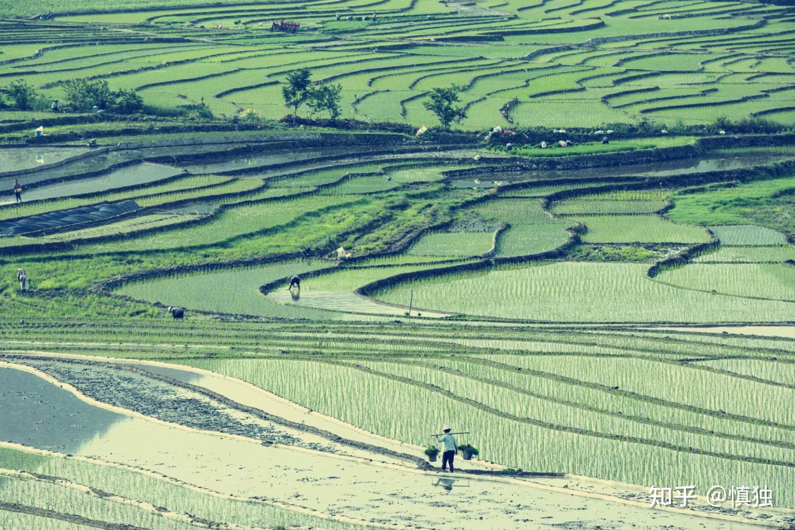 她那寨子对面是缓坡,一大片梯田,水稻田。