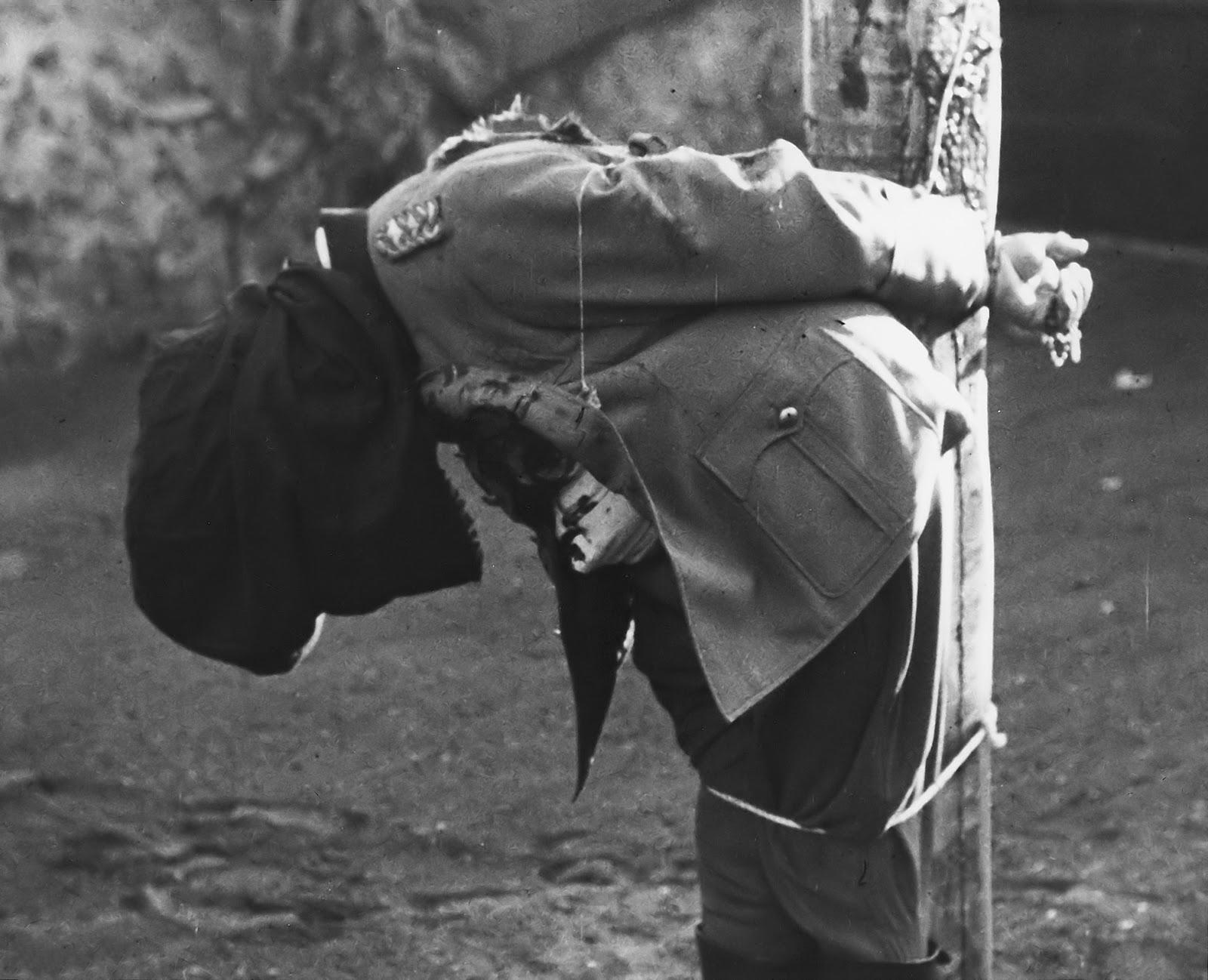 一台黑白摄影机记录了多斯特勒被处决的全过程,行刑后他的尸体被裹在白色棉布床垫套里,用担架抬上军用卡车运往波梅齐亚的德军墓地下葬。
