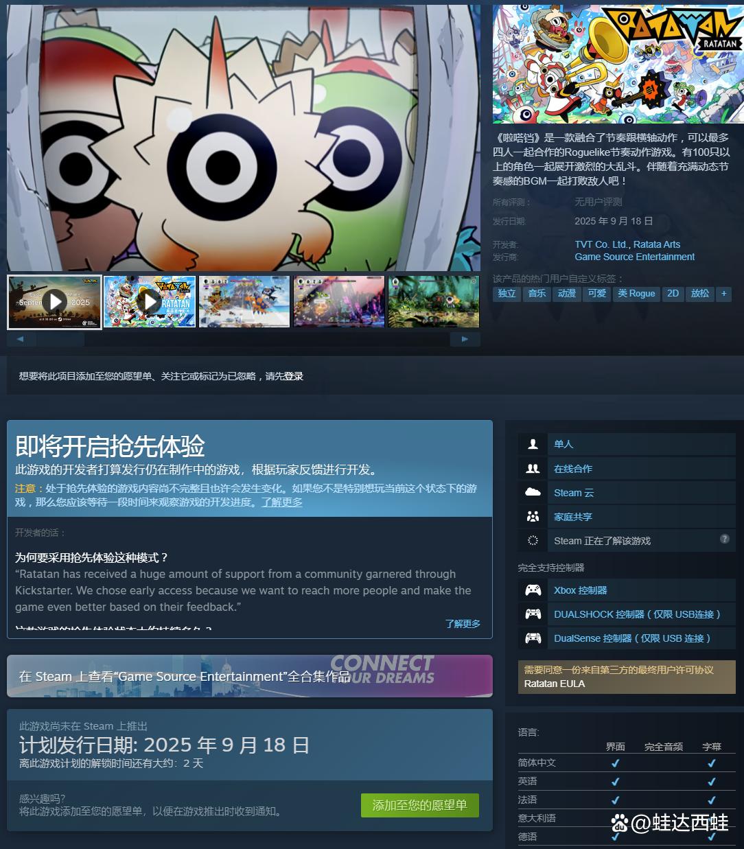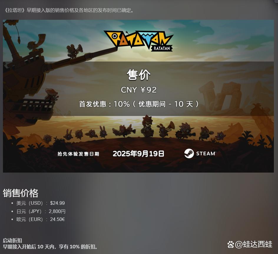 《啦嗒铛》抢先体验版本的售价已通过官方渠道(Steam商店页面、游戏开发商Ratata Arts公告)确认,具体如下: