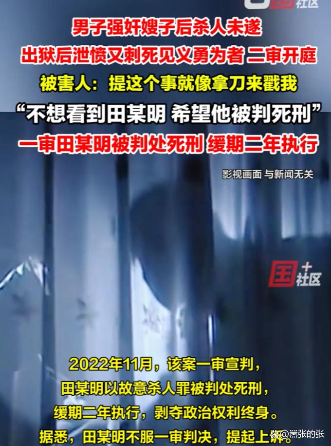 我真心希望二审法官能够充分考虑这个案件的社会影响。田某明不是普通的杀人犯,他是一个累犯,是一个专门伤害无辜善良人的恶魔。