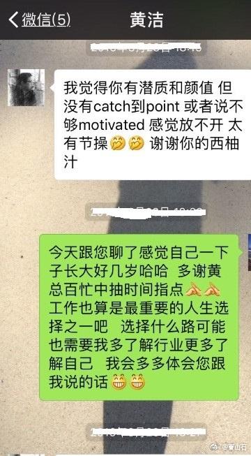 然而这个女孩很有勇气,面对这种诱惑,她选择了坚守原则,并且明确拒绝这种潜规则,我是要给她一个大大的赞的,她把这件事发布到网上,曝光这个分析师的丑恶嘴脸,让更多的人看清他的猥琐面目,给那些涉世未深的年轻女孩提个醒,不要为了一时的眼前利益而出卖了自己的灵魂。