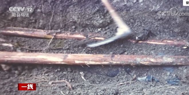 通过现场的勘察,死者很显然是非正常死亡的,在挖出尸体后,技术人员又对坟墓进行了清理,结果在尸体下面的泥土里面挖出来了2根手臂粗的木棍并且上面还缠绕着绳索,民警推测这应该就是用来运送尸体的工具。