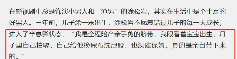 令人惊讶的是,在他事业蒸蒸日上的时候,涂松岩竟然决定暂时淡出导演岗位,回家当起了全职奶爸。