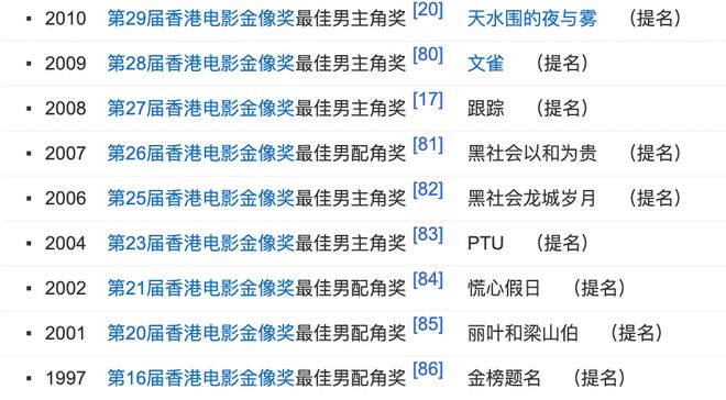 没过多久,他又在《黑社会》中出演了一名笑面虎黑帮大佬,再次获得金紫荆奖最佳男主角奖。