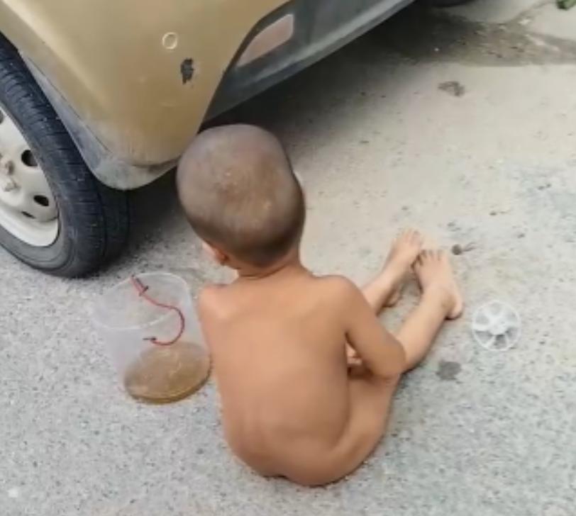 在这个炎热的夏天,两个小女孩光着身子在街头玩耍的画面,不禁让人心头一紧。在物质丰富的今天,我们很难想象,还有孩子连件遮体的衣服都没有。这个家庭的贫困程度,由此可见一斑。