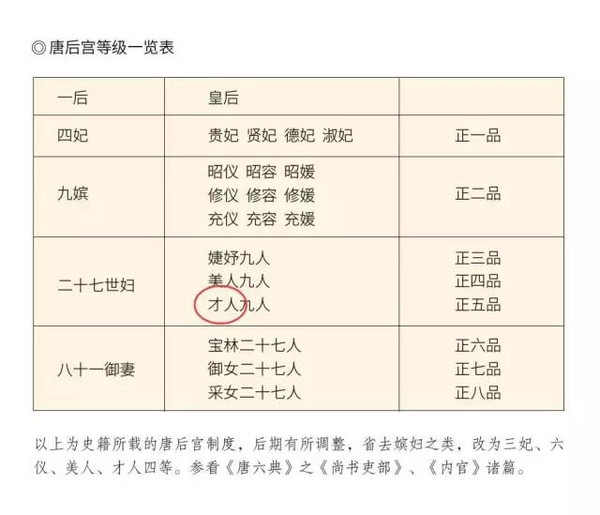 ○唐后宫等级一览表 红圈处为武媚娘等级
