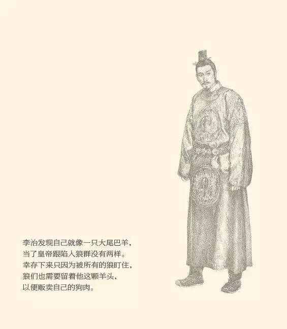 李治发现自己的任何努力都徒劳无益。他就像一只肥囊囊的大尾巴羊,当了皇帝跟陷入狼群没有两样。之所以没被吃掉,是因为所有的狼都盯着这唯一的羊。狼们也需要留着他这颗羊头,以便贩卖自己的狗肉。李治完全没有办法从狼群突围,只能听天由命,当一天皇帝坐一天朝。