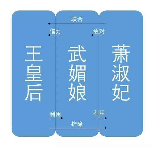 ○王皇后、武媚娘、萧淑妃宫斗关系图