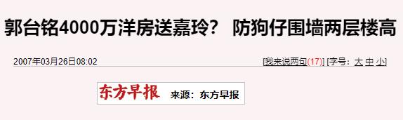 在2007年,关于两人的传闻颇多,其中之一便是郭台铭赠送刘嘉玲一栋价值4000万的豪宅。