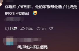 也有网友表示:你选择了梁朝伟,而他背后的家族则支持他与何鸿燊的女儿何超琼结缘!