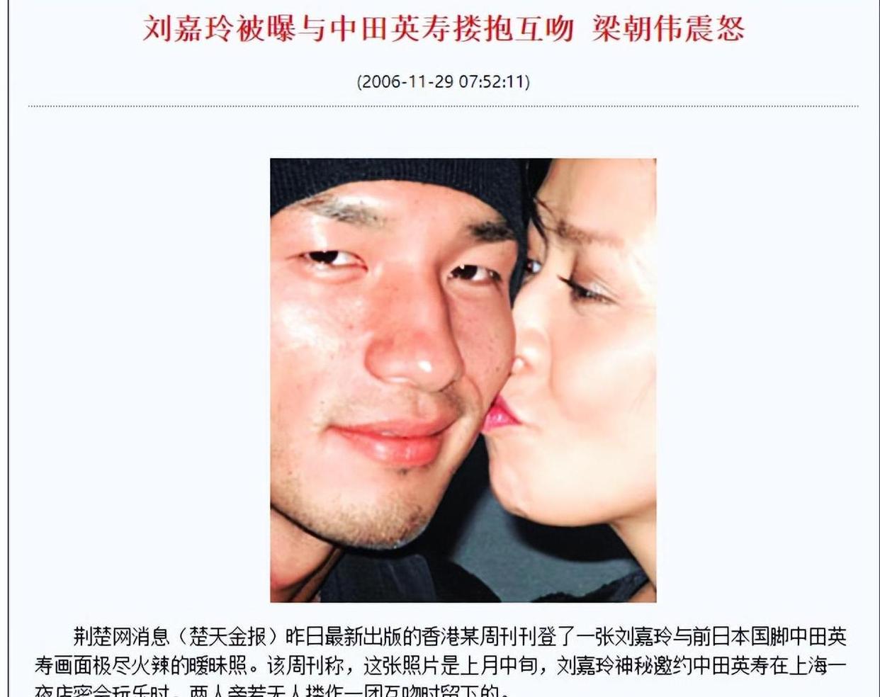 当时一家周刊发布了刘嘉玲与前日本国脚中田英寿的亲密合照,画面十分大胆。据说这张照片是在刘嘉玲邀请中田英寿到上海一家夜店时,两人在亲密互动中不经意间捕捉到的瞬间。