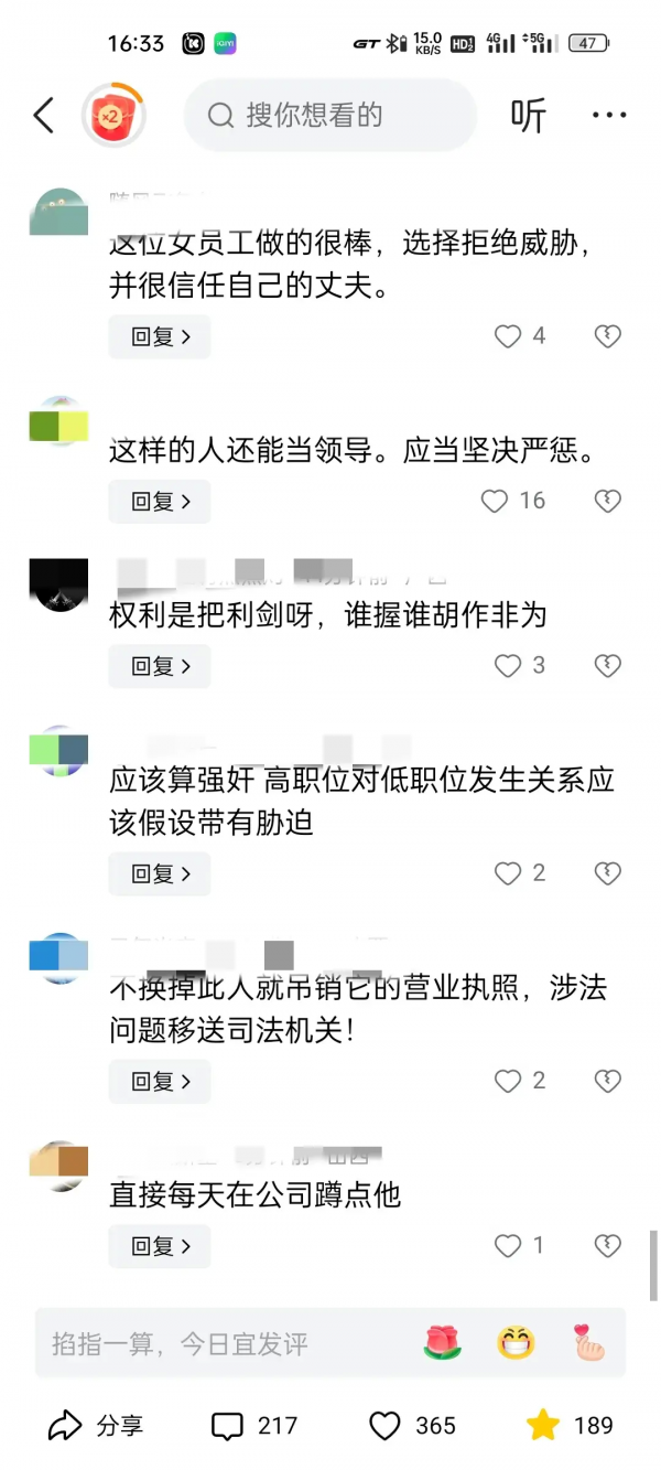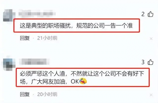 事件引发了网友的强烈愤慨和呼吁,要求严惩此类行为,维护职场女员工的利益。