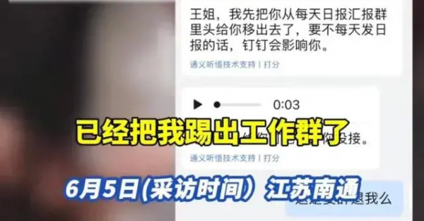 女员工在聊天中明确的表示了拒绝,却面临着被移出工作群的困境。