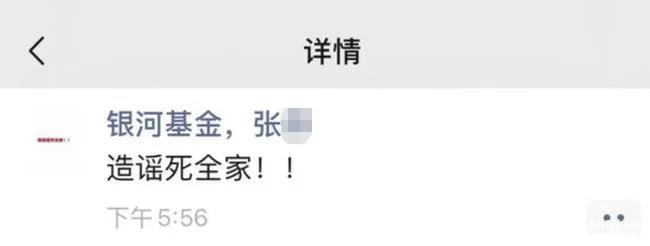 消息出来不到一个小时,银河基金PR直接发朋友圈辟谣:造谣死全家!!