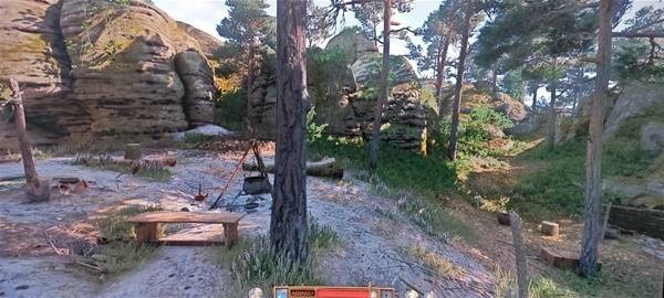 3、以篝火作为参照点,搜索附近的岩石堆。