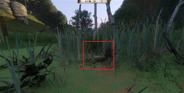 2、沿着河流向下游前进,在一棵倒下的空心树旁可以找到宝藏。